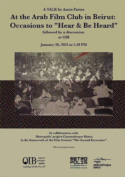 This talk traces the history of the Arab Film Club in Beirut, a film-society established in 1973 that testifies to the growing importance of alternative Arab cinema of the times. This cinematic movement started in Damascus in 1972 and was characterized by an innovative approach to film forms and narratives while participating in the political struggles of the global 68. The talk aims at documenting the activation practices around films that were part of the alternative cinema movement and explores specifically this little-known history of cinema in Lebanon by questioning the politicization of ‘cinephilia’ in the early 1970s in the country, as well as the current patrimonialisation of some films made and/or screened by members of this initiative.