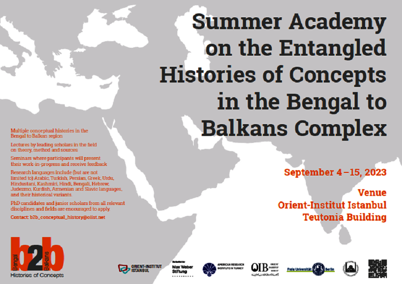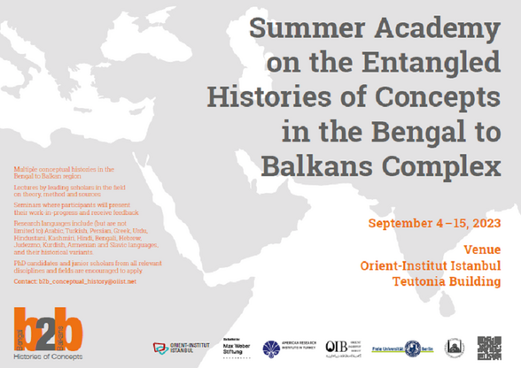 The Summer Academy intends to enhance networks of research, foster collaboration and pass on expertise to a new generation of PhD students and junior scholars whose work covers one or more of the languages of the region and are interested in working with history of concepts. Over the course of two weeks, our program will include lectures by leading scholars in the field on theory, method and sources, as well as seminars where participants will present their work-in-progress and receive feedback from the lecturers and their peers. Part of the sessions will be allocated for exploring collaboration and funding opportunities as well as potential joint projects. Research languages include (but are not limited to) Arabic, Turkish, Persian, Greek, Urdu, Hindustani, Bengali, Kurdish, Hebrew, Judezmo, Armenian and Slavic languages, and their historical variants. Researchers from all relevant disciplines and fields (e.g. history, philosophy, literature, social sciences, area studies, cultural anthropology, the study of religion, art history, environmental humanities etc.) are encouraged to apply. The summer school supports junior participants who wish to write or further develop drafts of thesis chapters or project-proposals related to conceptual history. Senior scholars will be invited to participate and will contribute in special sessions, workshops and keynotes reflecting on the field and their area of research. A selection of participants will be asked to contribute a paper (in English) to a special issue of the series Pera-Blätter, published by the Orient Institut Istanbul both in print and on the platform perspectivia.net.