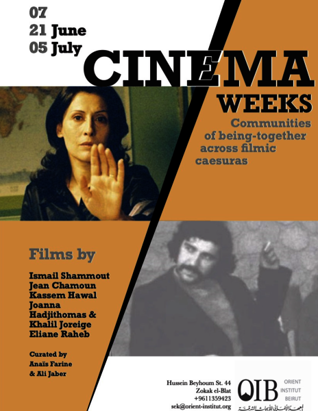Looking back and confronting the different blind spots that shape the histories of Cinema and communities in Lebanon, this film and talk program intends to explore the concept of being-with the unfinished in various ways. It aims to discuss the caesuras that shape cinematic language and respond to the erasure of a community of specters - the specters of a community-to-come, of the missing-other-to-come-back, and of the concept of living-together amongst the living-on in ‘post-post’ civil wars Lebanon.