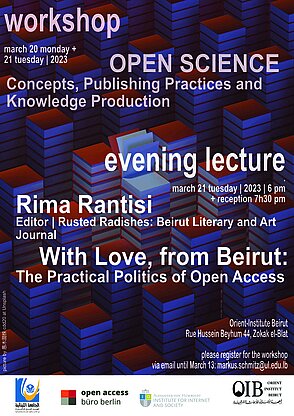 The workshop and evening lecture will be conducted in English. We kindly invite researchers, students, library staff and everyone interested in the topic to participate. At the end of the workshop, we will be happy to issue a certificate of participation. The workshop sessions will be conducted by Dr. Maike Neufend and Maxi Kindling (Open Access Office Berlin) and Marcel Wrzesinski (Humboldt Institute for Internet and