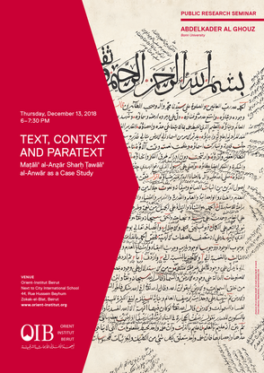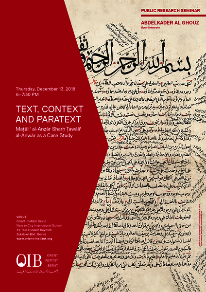 „Text, Context and Paratext: Maṭāliʿ al-Anẓār Sharḥ Ṭawāliʿ al-Anwār as a Case Study”