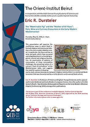 This presentation will examine the multifarious ways in which food informed religious and communal identity in the early modern Mediterranean. In particular, the focus will be on wine and pork, which have occupied a privileged position in articulating regional cultural and religious boundaries. An examination of patterns of consumption of these commodities challenges the prevailing notion of a culinary “clash of civilizations” at the Mediterranean table, and suggests the need for caution in drawing overly stark culinary boundaries between religious communities in a connected Mediterranean that was characterized by a richly dynamic and nuanced food culture.